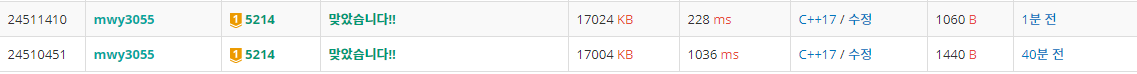 물론 이렇게 해도 문제를 풀 수는 있지만, 시간이 1036ms나 걸리는 걸 보니 문제의 의도가 따로 있는 듯 하다. 시간을 줄여 보자.