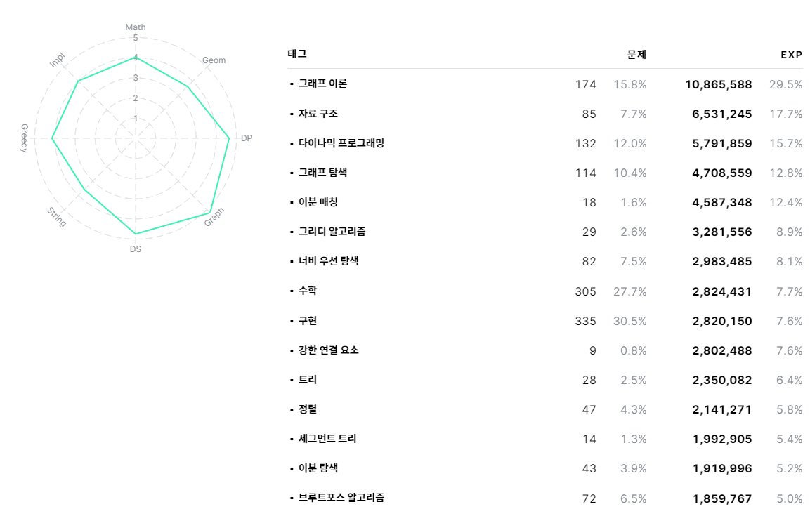 이정도면 나름 균형있는 편 아닌가? 문자열이랑 기하는 너무 어렵단 말이야.