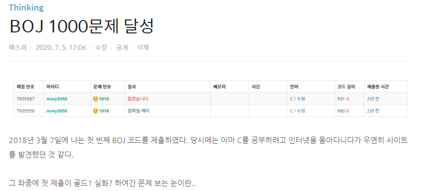 나의 BOJ 첫 제출은 2018년 3월 7일이었다. 그런데 처음으로 도전한 문제가 골드 1이었네.. 패기 무엇? (물론 이때는 solved.ac가 없었다)
