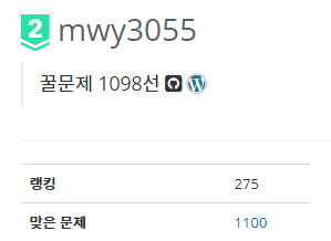 아무튼 첫 제출 이후 1029일만에, 1000문제 달성 이후 178일만에 1100문제를 풀었다. 2학기동안 문제를 거의 풀지 못해서 많이 늦어지긴 했지만, 종강한 후에는 많이 풀어보려고 노력하고 있다.