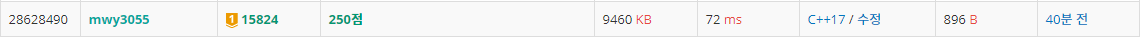 하지만 이 풀이로는 Large 태스크를 통과할 수 없다. $N <= 300,000$이기 때문이다. $O(NlogN)$ 이하의 풀이를 생각해야 한다.