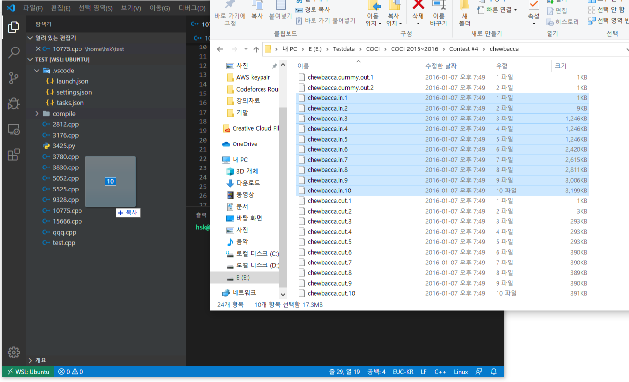 한국정보올림피아드 문제는 데이터를 제공하지 않지만, 대신 정올 사이트에서 문제 채점을 지원합니다. 데이터를 얻었으니 이제 리눅스를 설치하러 갑시다.