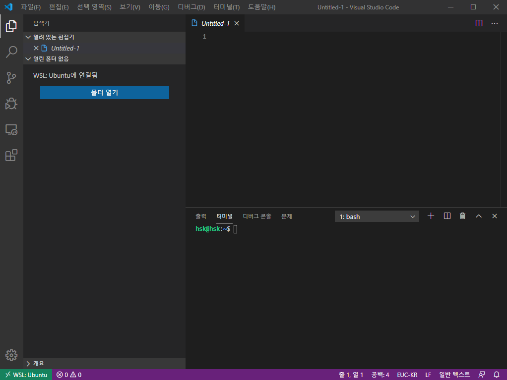 bash 터미널이 보입니다. 여기까지 왔다면 거의 다 한 겁니다.