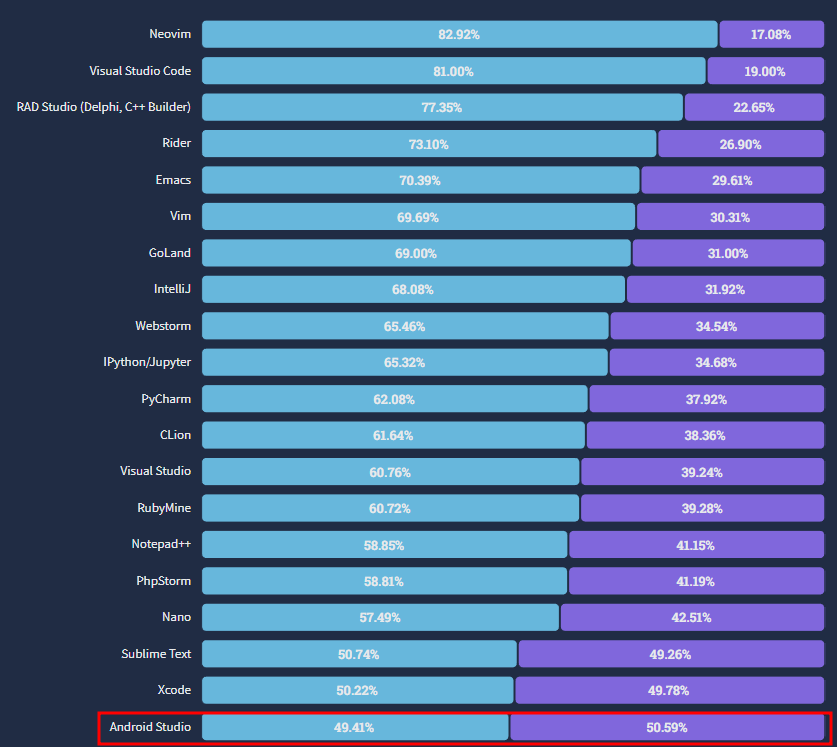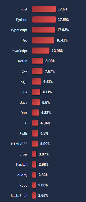 파란색이 만족하는 비율, 보라색이 두려워하는(dread) 비율이다. Rust ㅋㅋㅋㅋ