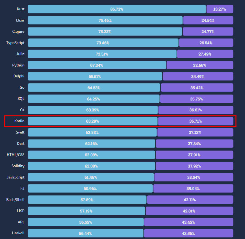 Kotlin은 꽤 밑에 있다 ㅜㅜ