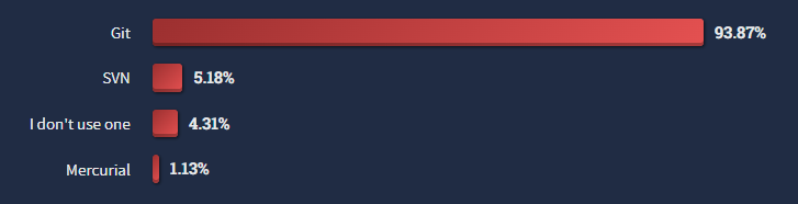 코딩을 배우고 있는 사람들의 17%가 VCS를 사용하지 않는다고 답했다. 현업 개발자들의 1%와 매우 비교되는 모습. VCS 연습합시다..!!