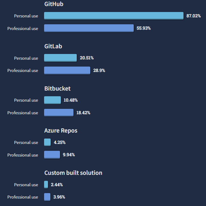 GitHub가 절대 우위. 현업에서는 생각보다 GitLab도 많이 쓰나보다..?