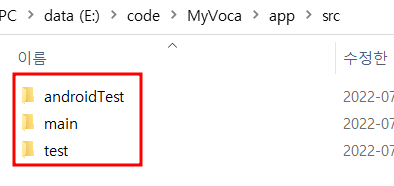 어, ``main``이라고? 그렇다. ``src``에 있는 그 ``main`` 맞다. 사실 여기 있는 폴더 각각이 모두 build variant이다. ``main``은 모든 build variant이 공유하는 코드를, ``test``는 local test 코드를 담고 있는 build variant인 것이다.