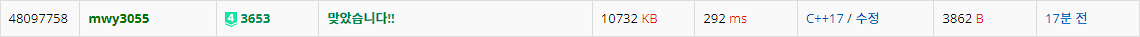 스스로 거의 다 풀 수 있었는데.. 조금만 더 생각할걸. 아깝다.