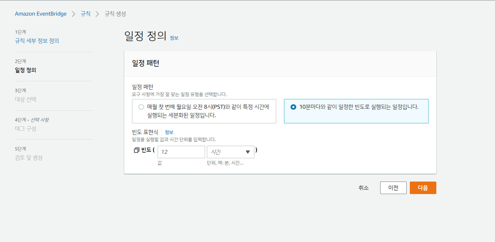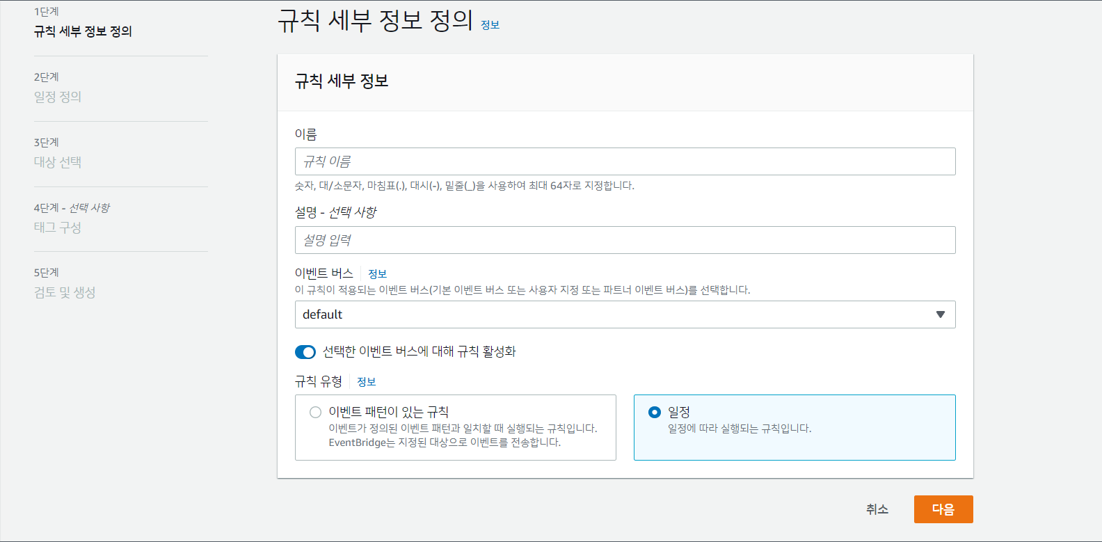 Eventbridge > 규칙으로 이동하여 새 규칙을 만들자.