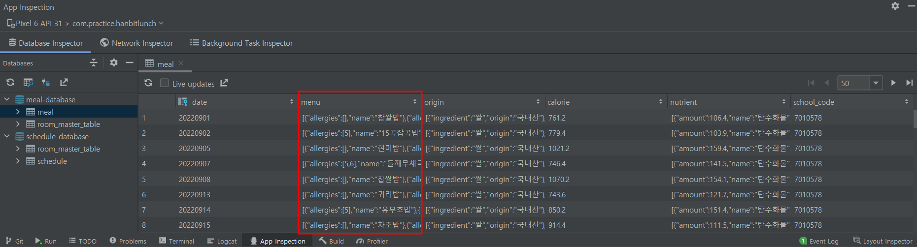 일단 ``Room``에는 제대로 저장되어 있다. App Inspection에서 확인할 수 있다.