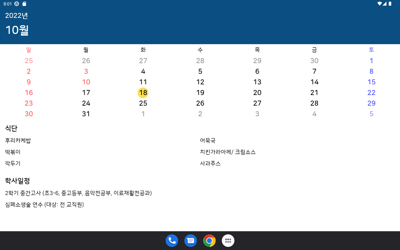 다음은 Medium UI 이다. Compact 화면에서 식단만 3줄로 바꾸었다.