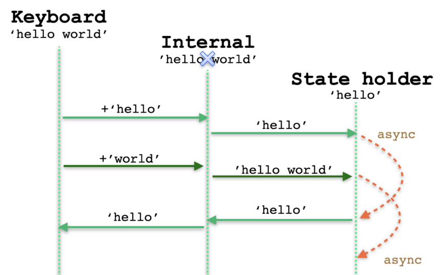 이렇게 하면 Keyboard, Internal, State holder의 값이 일치하지 않는 문제가 생긴다. 키보드 자체 로직을 적용하거나 타이핑을 빨리 하는 과정에서 에러가 더 많이 발생할 수 있다.