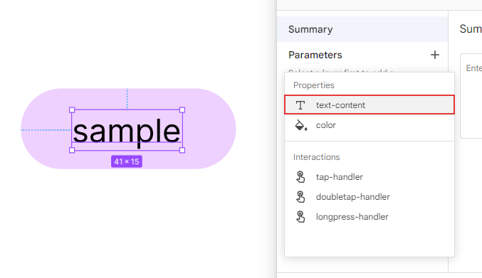 Relay를 사용하면 생성될 composable에 매개변수를 추가할 수 있다. 일단 지금은 문자열 매개변수 하나만 추가해 보자. 텍스트를 선택한 후 ``+`` 버튼을 누르면 된다.