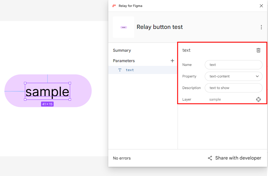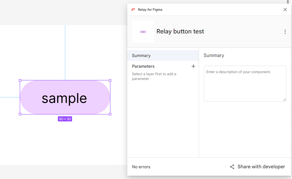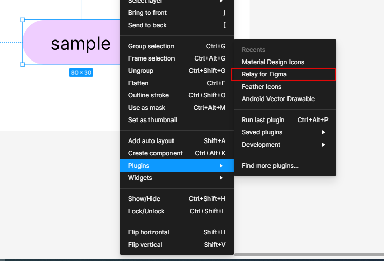 버튼을 우클릭한 후 Plugins - Relay for Figma를 실행하자.