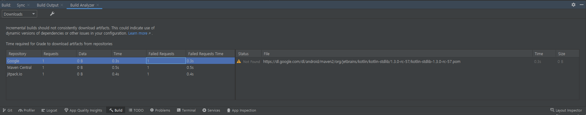 Build Analyzer에서 라이브러리 다운로드 시간 확인