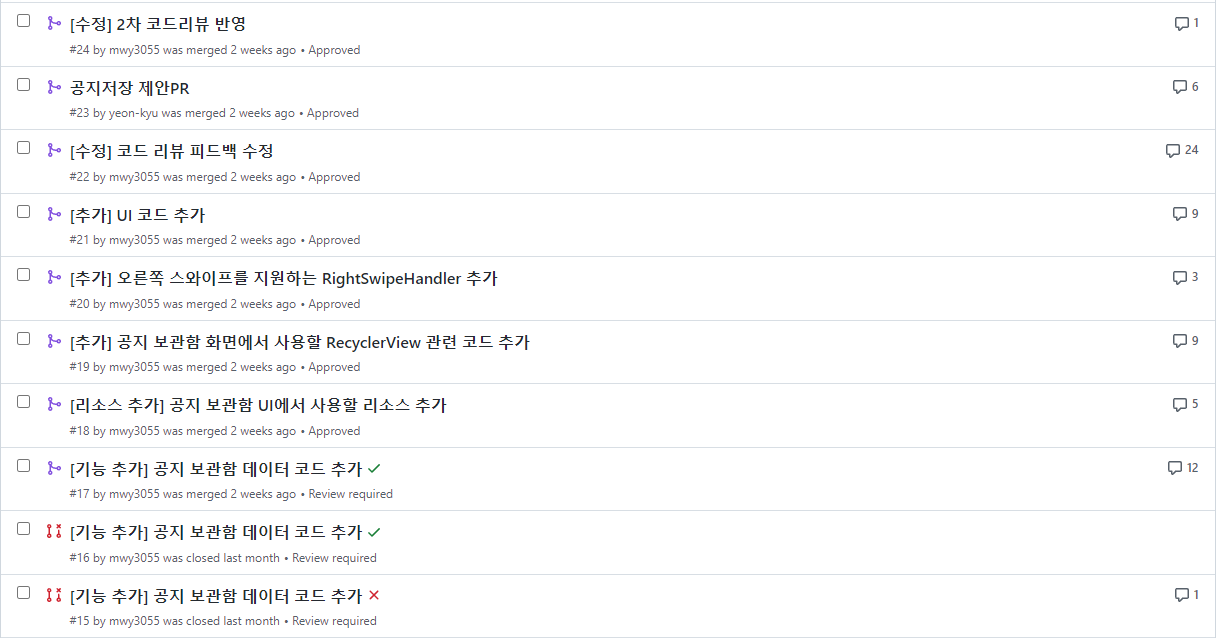 XML만 사용하던 프로젝트라 UI 틀 짜는 작업조차 버벅였고, 하여간 제대로 한 게 하나도 없었다. 아직 팀에 완전히 적응하지 못했어서 개인 프로젝트였다면 고민없이 바꿔버릴 것을 몇 시간 동안이나 고민한 적도 있었고, 그나마 코드 리뷰받고 겨우 완성할 수 있었다.