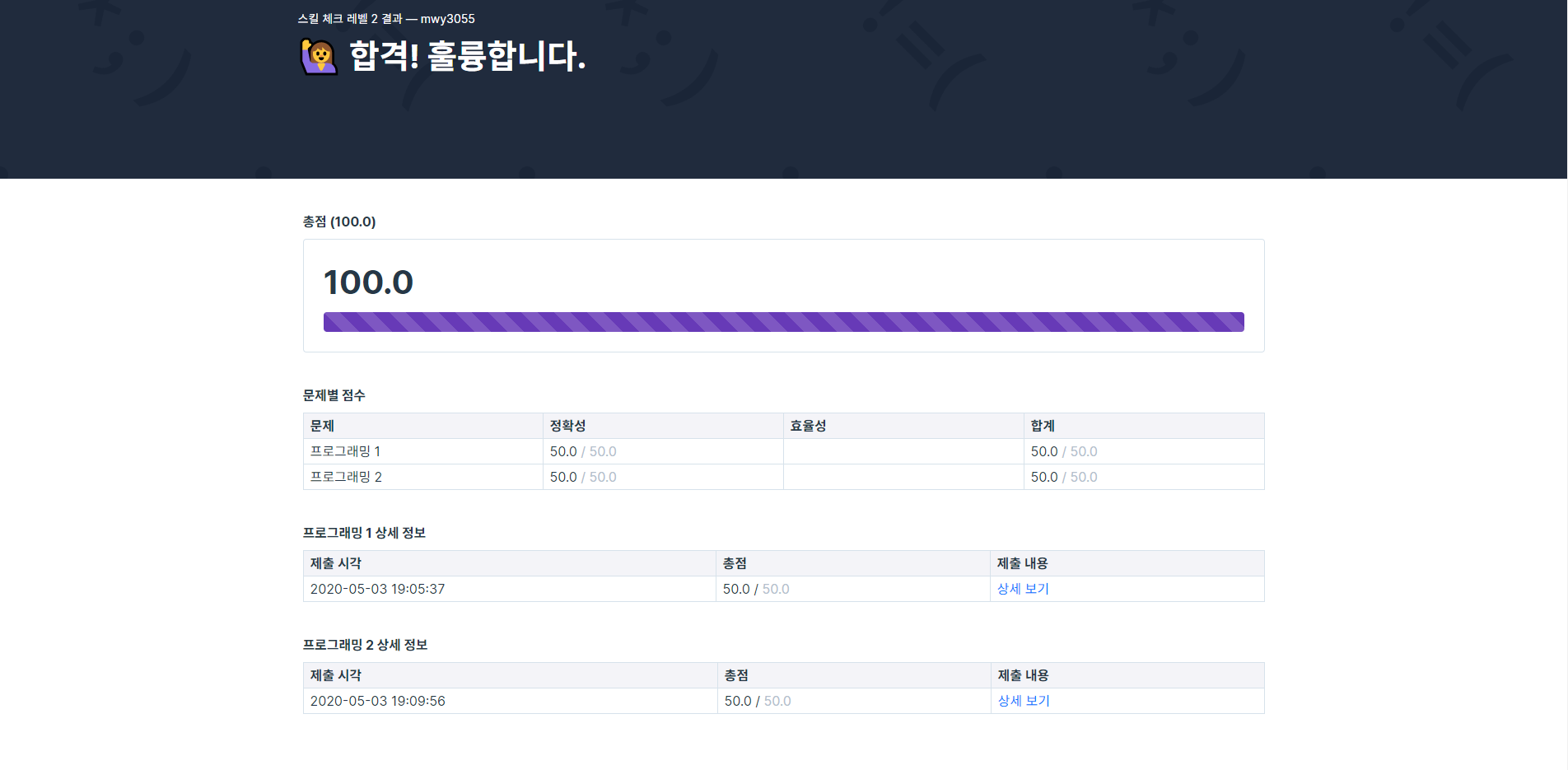 직접 풀어본 결과, 레벨 1은 solved.ac 기준으로 브론즈~실버 하위권 정도, 레벨 2는 실버 상위~골드 정도 되는 것 같다. 레벨 2는 두 번째 문제에서 시간 제한에 한번 걸려서 실패했다. ㅠㅠ 두 번째 도전에선 빠르게 성공했다.