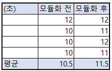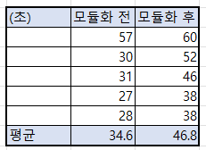 모듈화 후의 빌드 시간이 더 길었다. 모듈 수에 비례하는 오버헤드가 있기 때문에 어느 정도 예상하긴 했다.