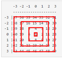 격자를 관찰해 보면, 중심이 같은 정사각형으로 이루어져 있다는 사실을 알 수 있다.