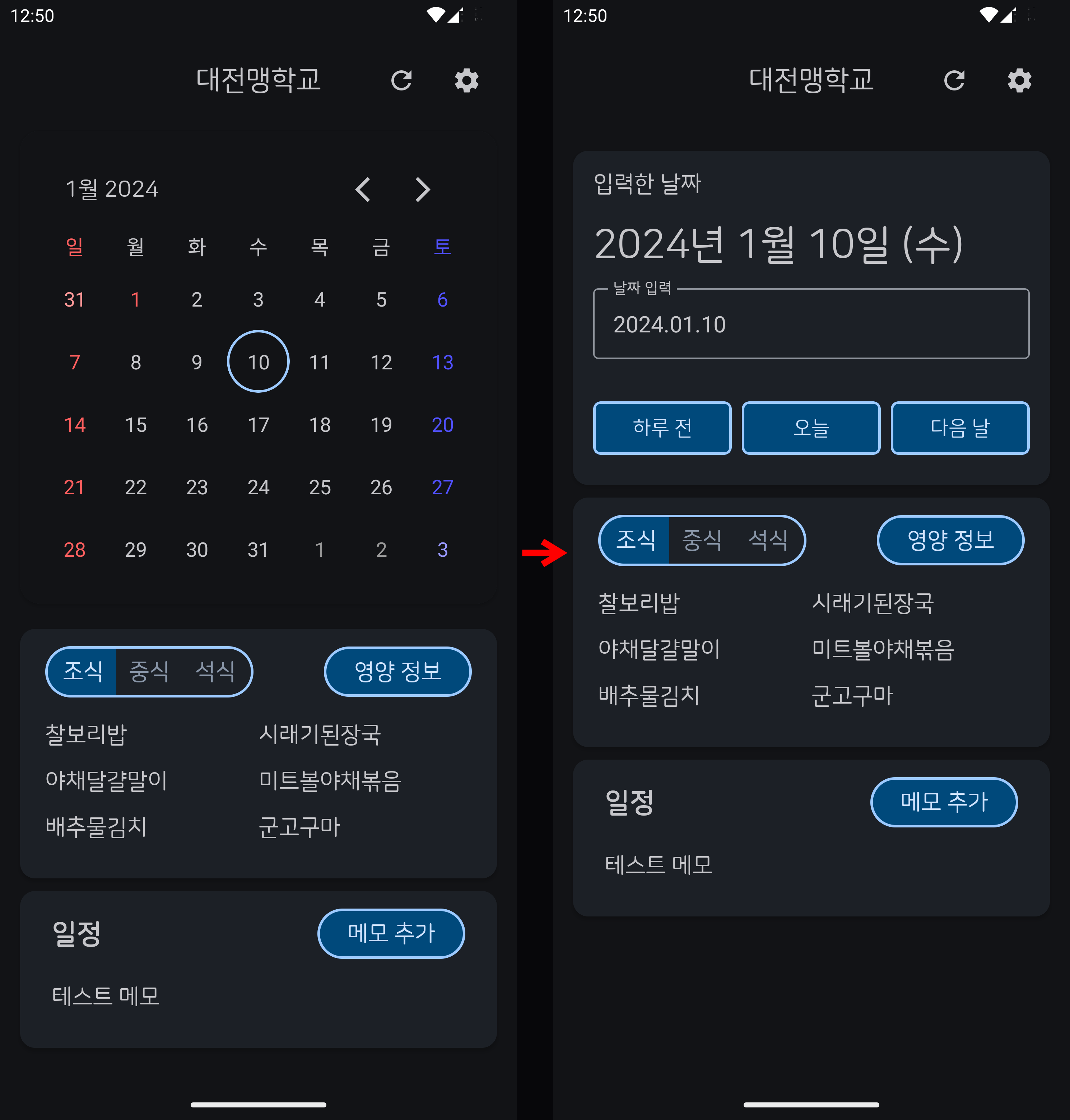 고맙게도 많은 분들께서 적극적으로 피드백을 해 주셨고, 덕분에 앱을 많이 개선할 수 있었다. 특히 달력 화면이 불편하다는 의견은 지겹도록 많이 들었어서, 날짜를 직접 입력할 수 있는 하루씩 보기 모드를 개발하여 기본 모드로 설정했다.