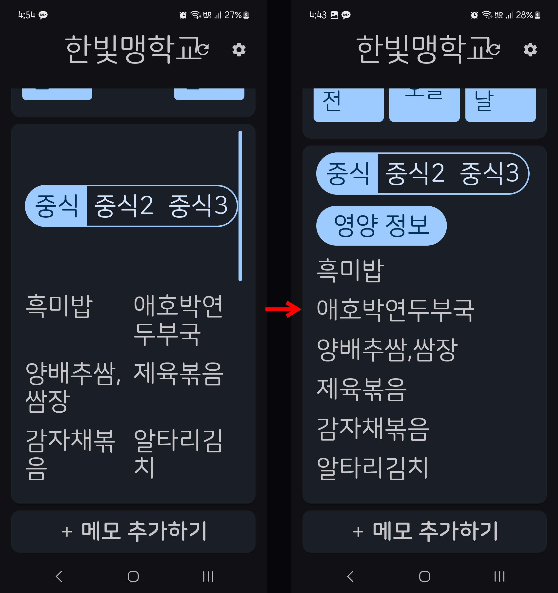 개발할 기능은 상대적으로 쉽게 정할 수 있었다. 콘테스트 기간 동안 1) 지원 범위를 전국 맹학교로 넓히고, 2) 메모/영양정보 등 부가 정보를 제공하며, 3) 구현한 UI/UX를 전맹/저시력 시각장애인에게 검증받기로 했다.