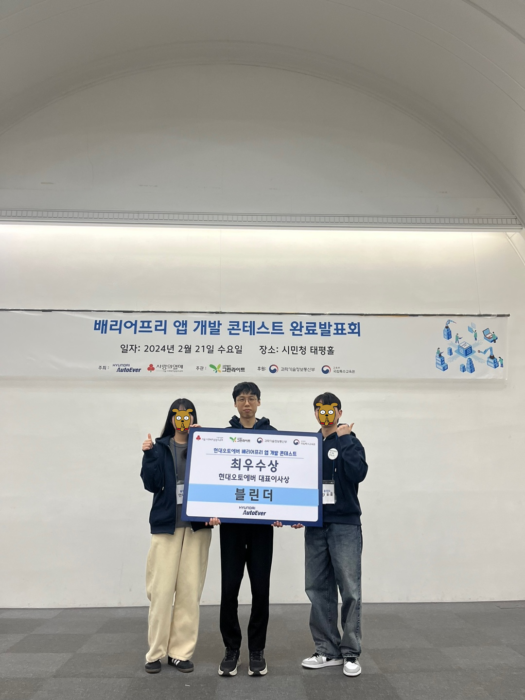 블린더가 최우수상을 받았다!!! 감사하게도 좋은 평가를 받아 최우수상을 수상할 수 있었다. 맹학교에서 일한 게 이렇게 돌아오는 건가 싶어 신기하기도 했다.