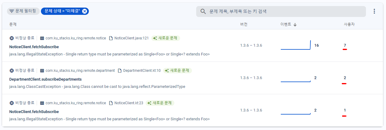 쿠링 안드로이드 팀은 업데이트를 출시한 후 일주일 정도 Firebase Crashlytics를 모니터링하는데, 업데이트가 출시된 직후부터 심각한 크래시 문제가 보고되었다. 심지어 이메일로 버그를 보고하는 사용자도 있었다.