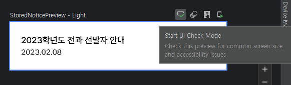 UI Check 모드를 통해 다양한 글꼴 크기, 화면 크기 등을 적용했을 때 프리뷰에 어떤 문제가 있는지 확인할 수 있다. 이전까지는 프리뷰 어노테이션을 여러 개 붙이거나 에뮬레이터를 켜서 확인해야 했는데, 이제 버튼 클릭 한번으로 편리하게 확인할 수 있다.