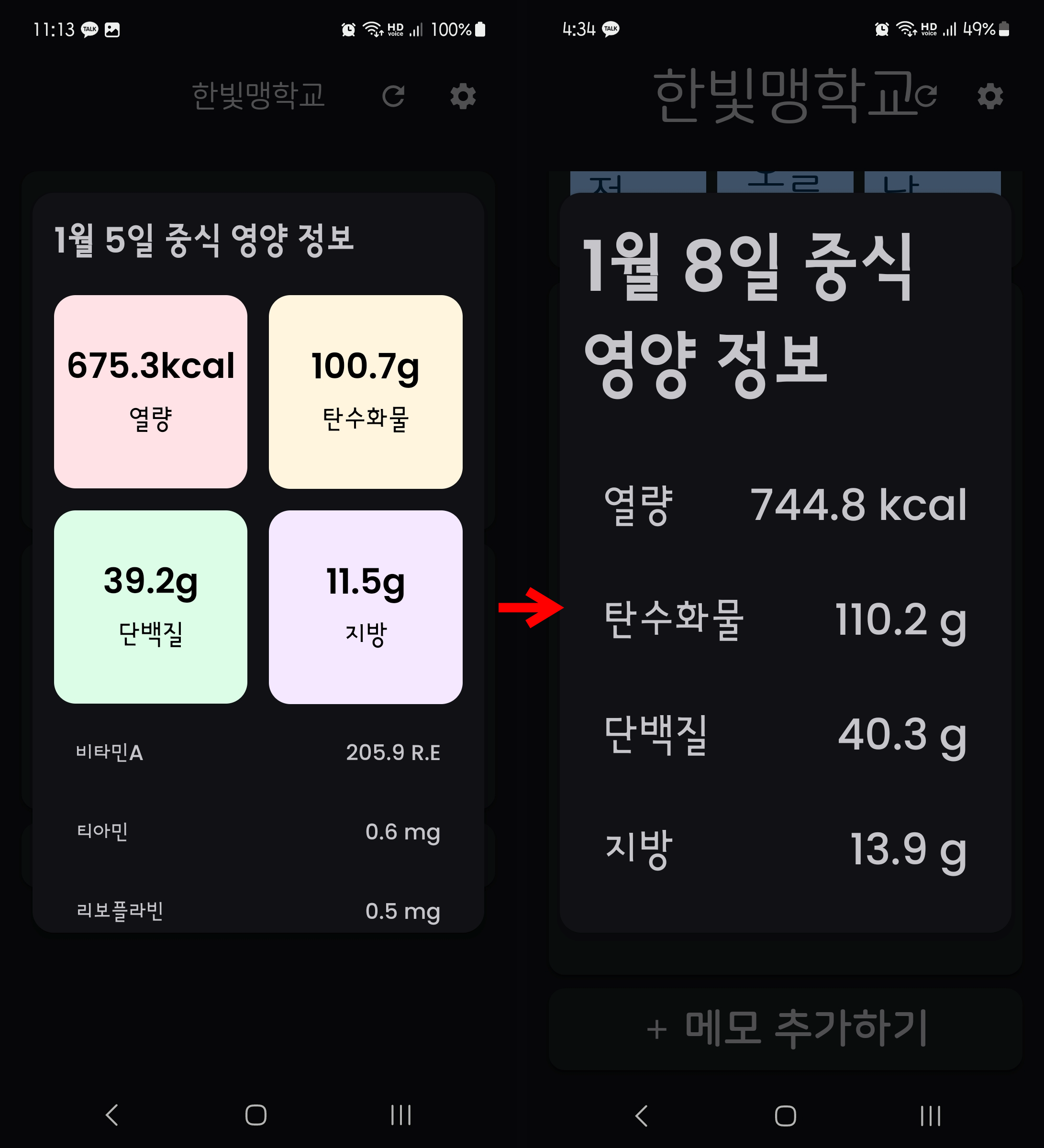 블린더 앱에서는 ``fontScale``의 값에 따라 서로 다른 UI를 보여주었다. fontScale이 일정 값 이상이라면 기본 UI 대신 저시력 UI를 보여준다. 저시력 UI는 예쁜 그래픽보다는 정보 전달을 우선 고려하여 개발하였다.