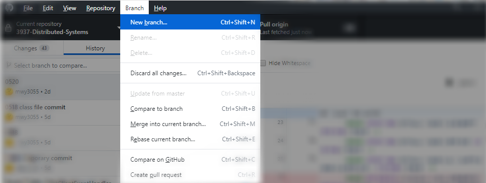 Github desktop을 기준으로 브랜치를 만들어 봅시다. 일단 글 쓰는 시점에서 프로젝트에는 master 브랜치 하나만 존재합니다.