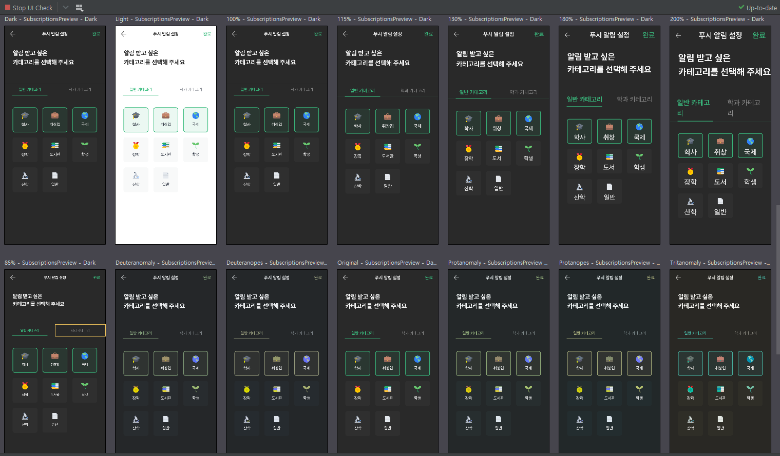 프리뷰를 통해 개발하고 있는 UI를 바로 확인할 수 있다는 점도 편리했다. 여러 가지 케이스를 한 눈에 볼 수도 있고, UI 코드를 리뷰할 때에도 큰 도움이 되었다.