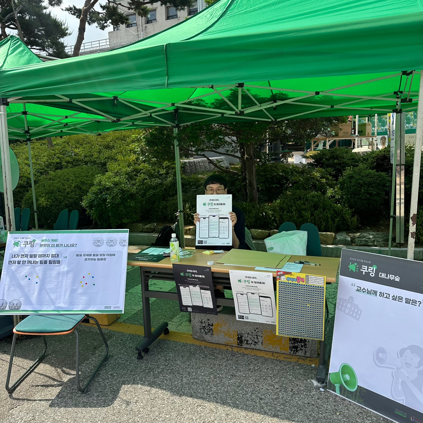 작년에 이어 두 번째 부스 참가였는데, 많은 학우들에게 쿠링을 알릴 수 있었고 신규 다운로드도 꽤 많이 얻었다. 갤럭시 쓰세요? 제가 안드로이드 앱 담당자에요