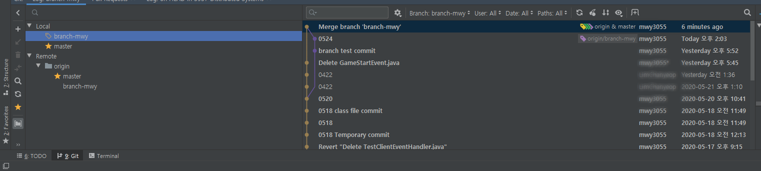 branch-mwy에 커밋 0524가 있습니다. 이 커밋을 master로 병합할 겁니다.