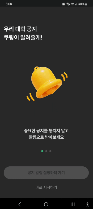 UI에서 ``feature_tab``을 찾아보자. 온보딩 화면 전에 스플래시 화면이 먼저 보이므로, ``feature_tab``이 화면에 보일 때까지 기다린 후 찾아야 한다. 기다리는 시간은 20초로 설정했다.