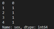 print(df['sex'].replace({"male": 0, "female": 1}).head())