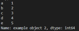 example_obj2 = pd.Series(data=list_data, index=index_data, name="example object 2") # change index, name
