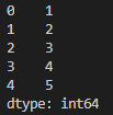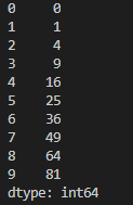 Series이기 때문에 (index, value) 쌍이 세로로 출력됩니다. 마지막에 데이터 타입이 출력된 모습도 확인할 수 있습니다.