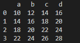 df2 = pd.DataFrame(np.arange(16).reshape(4, 4), columns=list('abcd'))