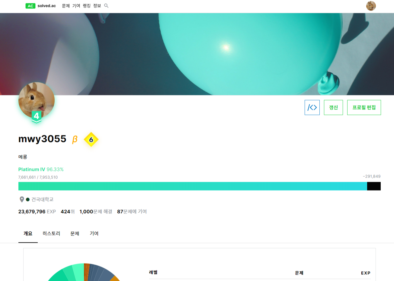 사실 저 1000문제에는 양치기용 브론즈 문제가 상당수 있다. 처음 시작할 때 푼 걸 제외하고도 한 200개는 되려나? 이제 다음 1000문제는 골드와 플래티넘으로 채워야 하지 않을까 싶다. 문제의 질을 높여야 코드포스 Div. 2에서도 살아남을 수 있겠지.