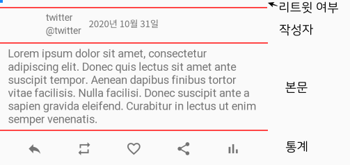 API v2로부터 어떤 트윗의 종류(일반, 인용, 리트윗, 답글)를 알 수 있다. 일반 트윗은 지금까지 하던 대로 보여주면 되지만, 다른 종류의 트윗은 보여줘야 하는 정보가 다르기 때문에 하나의 흐름에서 처리하기 까다롭다. 따라서 ``TweetMiniView``를 여러 부분으로 나누고, 각 부분을 보여주는 함수를 작성하였다.